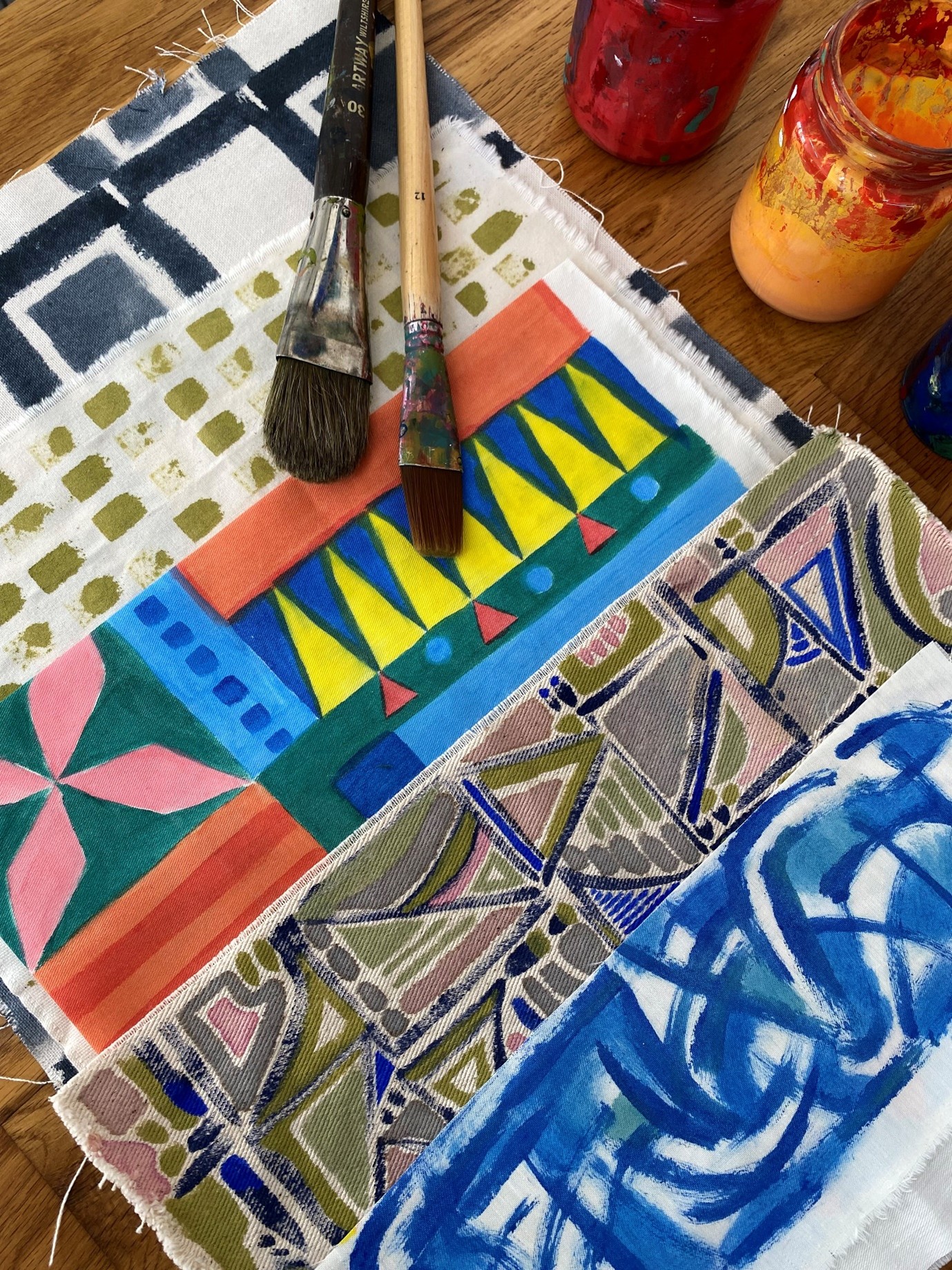 Before the workshop, consider what you might like your bundle of fabrics to be used for. Painted fabrics are fantastic for sewing projects, wall art, or perhaps as a banner for a small business.