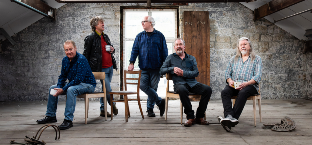 Cut to 2021… lifelong friends Clive and Neil are catching up over lunch and thought it might be fun to try and write some songs together. Several weeks and quite a few songs later, they decided to expand the enterprise to a full blown band. Clive recruited keyboardist Jez Smith and bassist Craig Fletcher from John Lees’ Barclay James Harvest and the lineup was completed with the addition of legendary drummer, Paul Burgess, who has played with 10cc since 1973. They named the band The Guilty Men and headed into the recording studio.