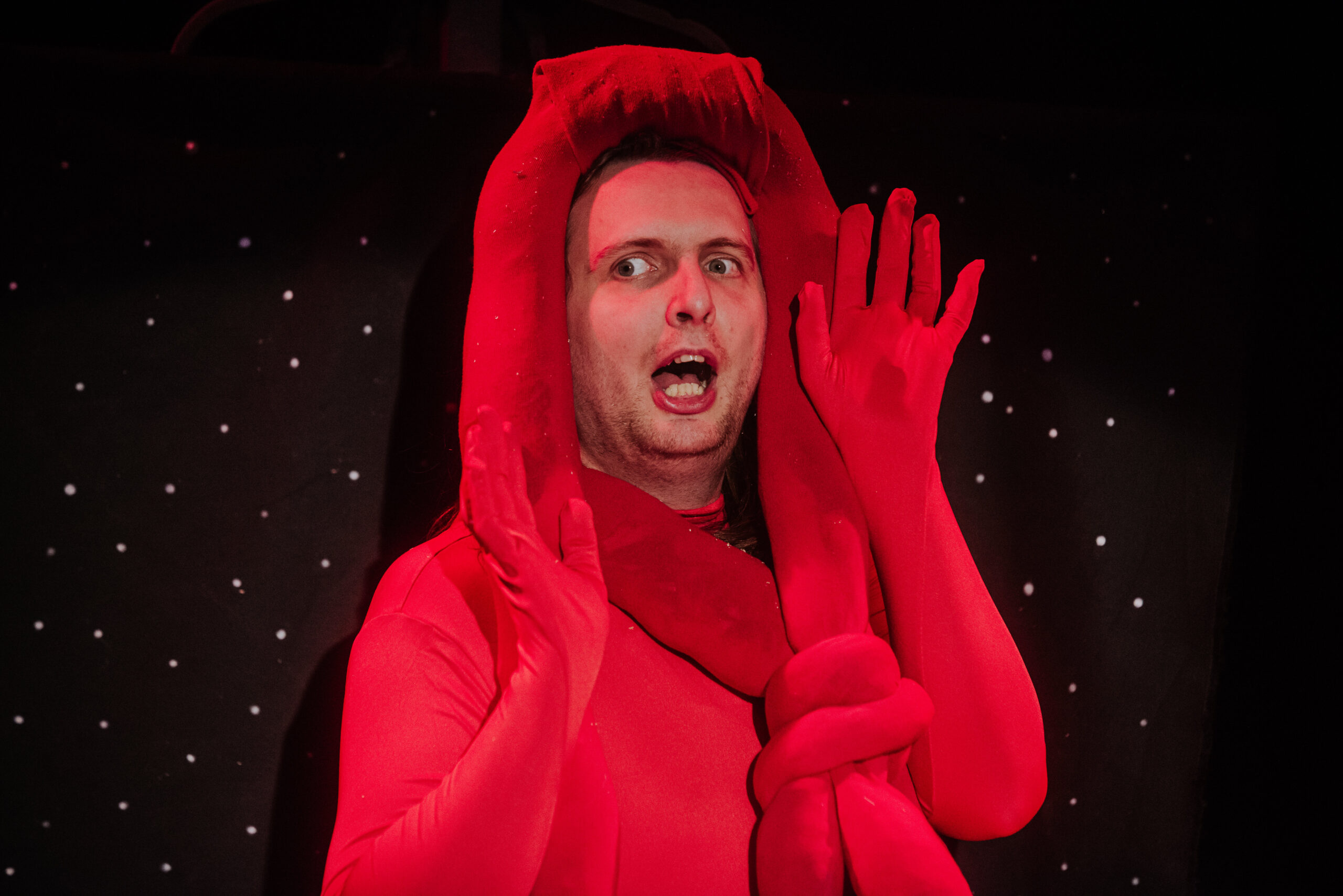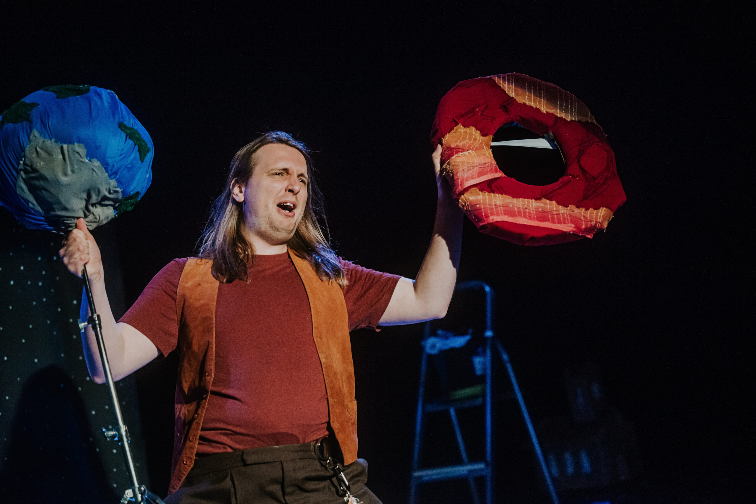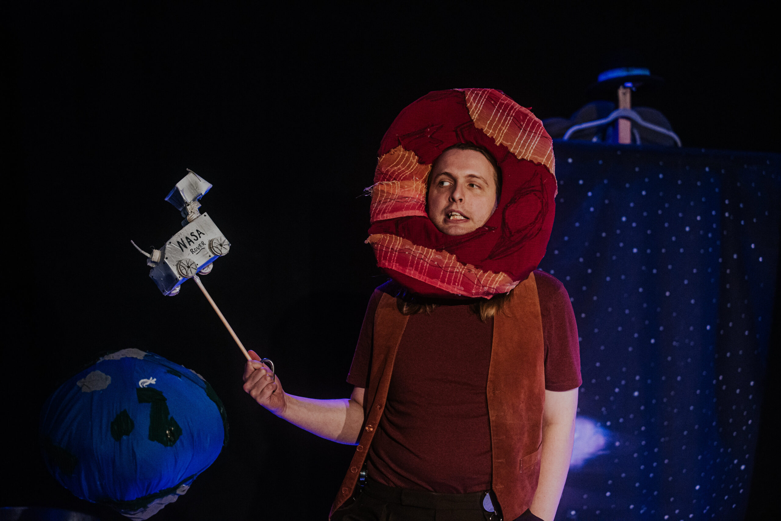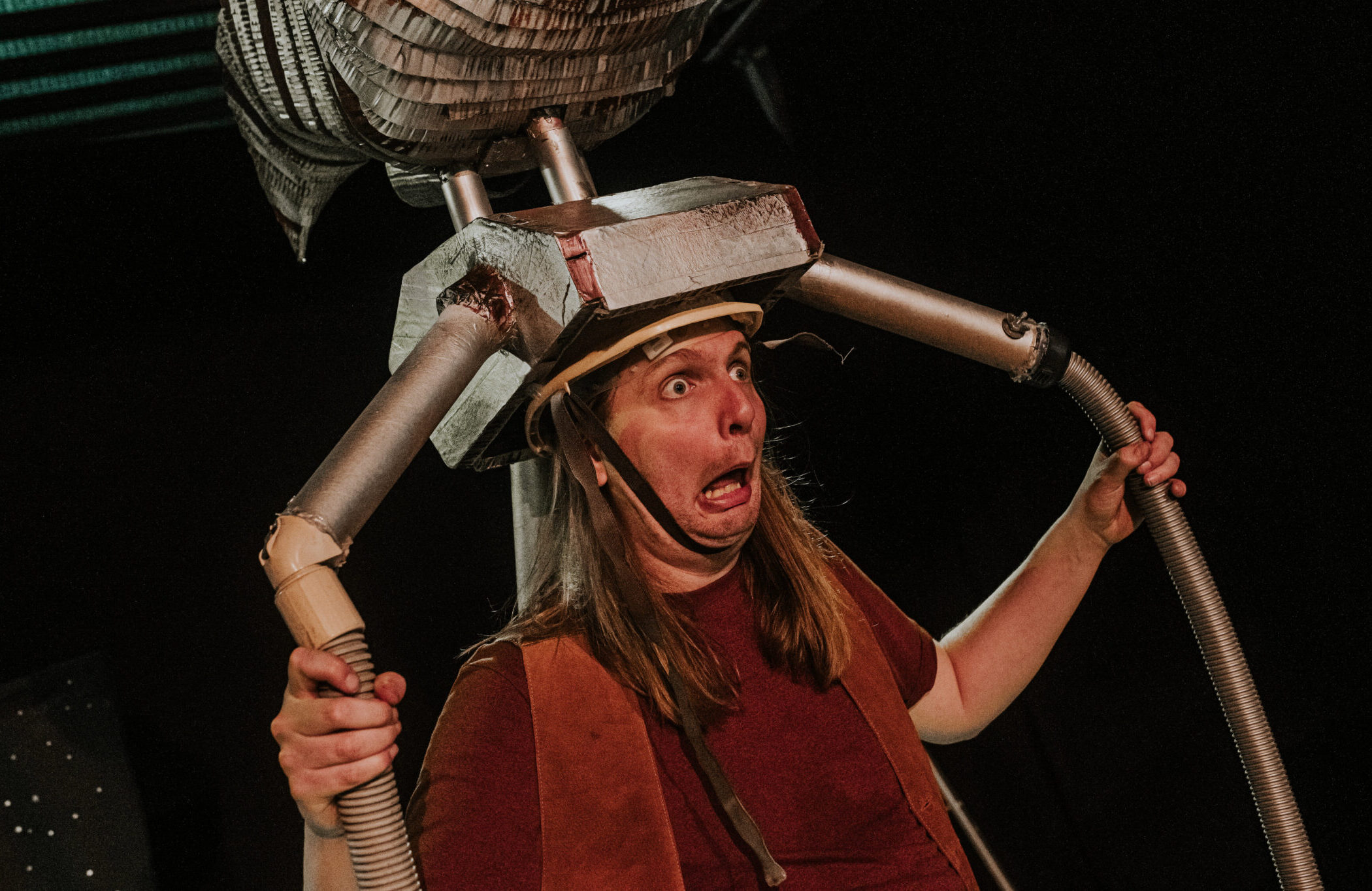 War of Worlds (on a budget) features one actor, a loop pedal, lots of cardboard, many many hats and at least two absolutely terrifying (definitely not made out of paper) tripod puppets. Can our hero outrun the aliens, play 25 characters, unwind himself from the microphone cable, stop for a tea break and save the day before it’s too late?